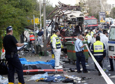 中新網(wǎng)3月6日電 以色列海濱城市海法5日下午發(fā)生的公共汽車自殺炸彈爆炸事件,已造成15人喪生,40余人受傷。