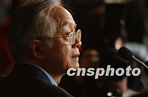 準(zhǔn)三點(diǎn)鐘,吳敬璉教授來(lái)到現(xiàn)場(chǎng),身穿西服,不系領(lǐng)帶,頭發(fā)紋絲不亂。他從記者群中擠了進(jìn)去,面對(duì)不停閃光的鏡頭,他神閑氣定,極其認(rèn)真地回答著記者們提出的每一個(gè)問(wèn)題。