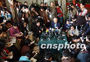 時(shí)間安排在今天下午兩點(diǎn),一點(diǎn)剛過(guò),記者們陸續(xù)到現(xiàn)場(chǎng)搶占有利地形。一百多名記者里三層,外三層,密密麻麻,中間只留一桌一椅,那是留給吳教授的。桌上堆滿了話筒和錄音機(jī),僅廣東的電視臺(tái)話筒就達(dá)六個(gè)。