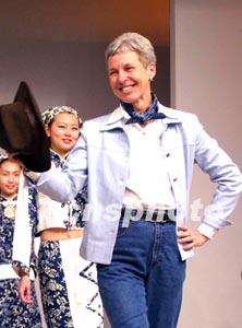 十二日,美、英、法等22國駐滬領(lǐng)事夫人們齊聚東華大學(xué),參加主題為“女性之美,服裝之魅”的文化交流活動;顒又蓄I(lǐng)事夫人們還興致勃勃的走上T臺與東華大學(xué)的師生共展女性風(fēng)采。圖為領(lǐng)事夫人們在T臺上表演。作者:湯彥俊