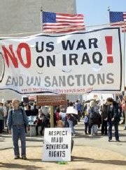 在主戰(zhàn)陣營的領(lǐng)導(dǎo)者美國國內(nèi),來自100多個城市的數(shù)以萬計示威者匯聚到首都華盛頓,以主辦者所形容的“人!睉(zhàn)術(shù),盡最后努力游說布什總統(tǒng)聽聽民間反戰(zhàn)的聲音。示威者在華盛頓紀念碑集會,其后匯合游行隊伍,聲勢浩大地游行往白宮和司法部。一名大學(xué)生呼吁:“布什總統(tǒng),聽聽今天在你面前人民的聲音吧,美國人說“不要向伊拉克開戰(zhàn)””。