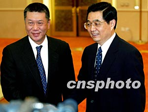 中新社北京三月十九日電(記者黃少華)國家主席胡錦濤今天上午在人民大會(huì)堂福建廳會(huì)見了來北京列席十屆全國人大一次會(huì)議閉幕式的香港特別行政區(qū)行政長官董建華。