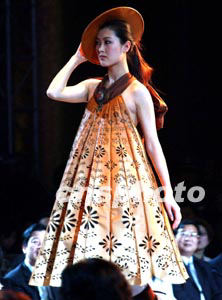 來自中國臺(tái)北的服飾佳作參加三月二十五日在北京舉行的“漢帛杯”國際青年時(shí)裝設(shè)計(jì)師作品大賽,以東方特色的扇面裙裝令人刮目相看。作者:賈國榮