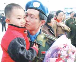 出發(fā)前,張華生收到了妻子寄來的特快專遞。相片上,小“維和”在媽媽的懷抱里幸福而乖巧。當(dāng)晚,他給妻子回了信:“帶好我們的兒子,讓他快快長大。等我回來,他就會叫‘爸爸’了。”