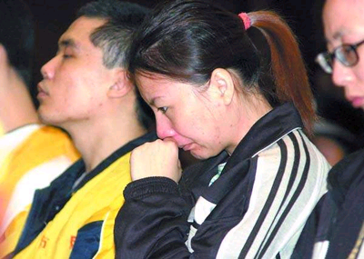 陳惠英穿著一套灰白相間的運(yùn)動(dòng)服,一條馬尾辮染成黃色,顯得十分時(shí)尚。她是麥國(guó)慶的妻子,今年才31歲,年輕的面容上帶著幾分憔悴。被押進(jìn)法庭時(shí),她的腳步遲緩,怯生生地向旁聽席張望。