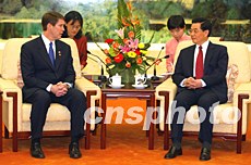 國(guó)家主席胡錦濤二十一日在北京人民大會(huì)堂會(huì)見(jiàn)美國(guó)參議院多數(shù)黨領(lǐng)袖弗里斯特一行,雙方就中美關(guān)系和共同關(guān)心的問(wèn)題廣泛、深入地交換了意見(jiàn)。作者:毛建軍