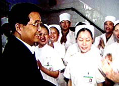 上午10時,胡錦濤總書記來到四川省人民醫(yī)院看望醫(yī)務人員和病員,并在這里親自主持了醫(yī)務界及有關方面代表參加的防治非典座談會。