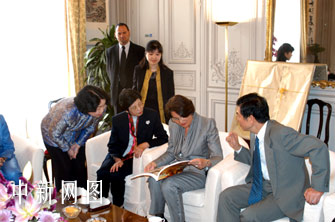 拉法蘭總理夫人一進(jìn)大門,就對迎候的中國駐法大使吳建民和夫人施燕華公參說:“訪問中國是我的一個(gè)愿望。由于中國目前發(fā)生的特殊情況,我沒能于上月隨同丈夫一起訪華,感到非常遺憾。今天我把原本要一同訪華的所有夫人們帶到這里,參觀巴黎的中國---新近成立的巴黎中國文化中心,也是了卻一個(gè)心愿!