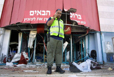 以色列北部城鎮(zhèn)阿富拉一購(gòu)物中心5月19日發(fā)生大爆炸。有三人在爆炸中死亡,近50人受傷,其中13人傷勢(shì)較重。這是一起自殺襲擊事件,也是兩天內(nèi)在以色列發(fā)生的第五起爆炸事件。