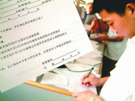 記者還發(fā)現(xiàn),新版的健康申報(bào)表的規(guī)格有了統(tǒng)一,全部使用32開大小(A5)的紙張,而原來在火車站和民航部門里,申報(bào)表的紙張大小各不相同,有的16開大小,有的8開大小,也有使用32開大的。這次,新版的健康申報(bào)表則統(tǒng)一了規(guī)格,一律32開大小的紙張。