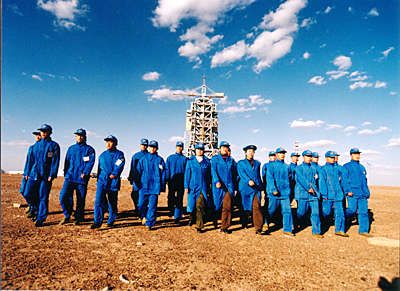 四十多年前,英雄的先驅(qū)——中國人民解放軍陳士榘上將率領(lǐng)的十萬大軍,悄然開進這片廣袤無垠的戈壁灘,建起中國第一個航天發(fā)射場。與此同時,孫繼先中將率領(lǐng)解放軍第二十兵團,開始組建中國航天發(fā)射部隊。