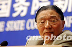 著名水電專家、兩院院士潘家錚在回答國外記者關于三峽大壩出現(xiàn)裂縫問題 中新社記者:盛佳鵬