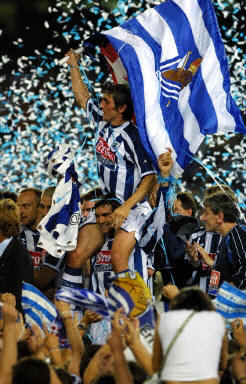 巴塞羅那隊當(dāng)晚主場迎戰(zhàn)塞爾塔隊,只有獲勝才能取得下個賽季歐洲聯(lián)盟杯賽的參賽資格。為此,巴塞羅那隊場上球員個個斗志昂揚,第八分鐘就由索林首先攻進一球。第二十七分鐘時,塞爾塔隊的安赫爾和巴塞羅那隊的克魯伊維特發(fā)生沖突,結(jié)果兩人被主裁判全部罰出場外。此后,雙方在少一人的情況下繼續(xù)比賽。第五十一分鐘時,阿根廷“小飛人”薩維奧拉又攻進一球。這樣,巴塞羅那隊以2:0獲勝,總算搭上了末班車,躋身下賽季歐洲聯(lián)盟杯賽。