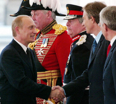 英國王儲查爾斯親王到希思羅機場迎接普京和夫人,然后共同驅(qū)車到倫敦市中心與英國女王和首相會面。