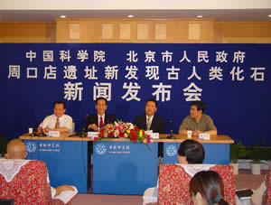 中科院古脊椎動(dòng)物與古人類(lèi)研究所所長(zhǎng)朱敏介紹說(shuō),北京市周口店鎮(zhèn)田園林場(chǎng)工作人員二00一年在尋找水源過(guò)程中,在周口店遺址以南約五公里處半山腰間的田園洞內(nèi)發(fā)現(xiàn)一些動(dòng)物化石,該所其后派出科研人員前往出土化石的洞穴考察。二00二年底,周口店古人類(lèi)學(xué)研究中心向國(guó)家文物局提出正式發(fā)掘申請(qǐng),于今年五月獲得發(fā)掘執(zhí)照。