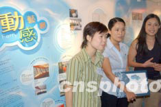 由香港康樂及文化事務署舉辦的“海上動感藝廊”活動,七月十二日在香港開幕,該活動目的是為繁忙的都市開辟另類的藝術(shù)空間,讓市民在日常生活中享受藝術(shù)樂趣。圖為裝置藝術(shù)設(shè)計者與作品。中新社記者:錢興強