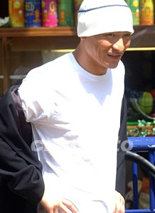 香港巨星劉德華,七月十九日冒酷署出席在香港舉行的“諾基亞6108揮筆舞劍創(chuàng)記錄”慈善活動(dòng)。 中新社記者:錢興強(qiáng)  香港五百人頭頂烈日揮寫書法及耍太極劍。中新社記者:錢興強(qiáng)