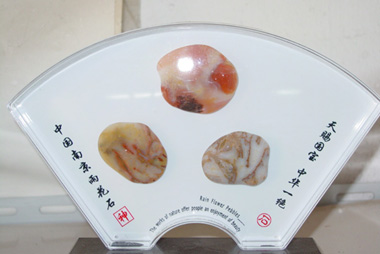 去年在山東泰山舉辦的“國(guó)際奇石博覽會(huì)”上,南京六合雨花石收藏家曹萍女士收藏的名為《人》、《鑒真東渡》獲得金獎(jiǎng),她的雨花石展臺(tái)引得韓國(guó)愛(ài)石人協(xié)會(huì)主席樸正川子駐足流連,連聲稱贊“妙、奇、絕”。曹萍女士認(rèn)為人們之所以對(duì)雨花石情有獨(dú)鐘,是因?yàn)槭篱g奇石、觀光石眾多,但唯有雨花石以其獨(dú)具的“六美”取勝。既煥若瑟若的質(zhì)地美,鐘靈毓秀的形態(tài)美,璀璨瑰麗的色彩美,變化有致的紋理美,詩(shī)情畫意的呈象美,形神兼?zhèn)涞囊饩趁馈?/p>