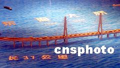 據(jù)悉,東海大橋是中國(guó)第一座真正意義上的跨海大橋,全長(zhǎng)三十一公里,是上海洋山深水港工程的重要組成部分,全部工程由中國(guó)自行設(shè)計(jì)建設(shè)。主橋(V標(biāo)段)是由兩座一百四十點(diǎn)二米的“人”字型主塔組成的斜拉橋,四百二十米跨度,規(guī)模上同上海南浦大橋、盧浦大橋相近。