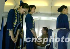 經(jīng)過了SARS對旅游經(jīng)濟的沖擊后,海南省的旅游市場目前已經(jīng)全面復(fù)蘇。周末假日,海南航空公司從各地飛往海南的班機全部爆滿,身著“海南服”的空姐歡迎來自四面八方的乘客。中新社記者:任晨鳴