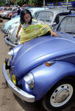 隨著大眾汽車墨西哥普韋布洛廠停止生產(chǎn)大眾原型“甲殼蟲”,這種汽車最終退出了歷史舞臺。圖為孟加拉大眾“甲殼蟲”汽車展。
