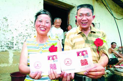 中新網(wǎng)8月2日電 昨日,經(jīng)歷了近一年的“愛(ài)情長(zhǎng)跑”,四川省資中縣公民鎮(zhèn)兩位艾滋病感染者———37歲的曹學(xué)良和34歲的王代英終于迎來(lái)了新婚大喜的日子。