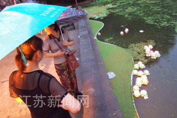 2003年8月3日晚至4日凌晨,南京莫愁湖公園推出“迎七夕莫愁湖放燈游園晚會”,數(shù)千游客冒雨與會。細(xì)雨中,對對情侶相依相偎,更添溫馨。