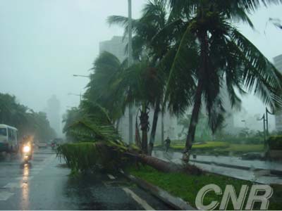 由于受到大范圍停電的影響,記者到八時(shí)三十分才能打開(kāi)電腦寫(xiě)稿,但是短短一篇稿件的撰寫(xiě)中,卻經(jīng)歷了四次停電。記者一大早在中新社海南分社附近地區(qū)看到,今晨橫掃海口的“科羅旺”在城市的樓宇中穿行,強(qiáng)大的氣流形成了類(lèi)似乎警笛一樣的怪叫聲,整個(gè)城市處于一種莫名的氣氛中。