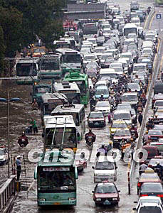 “杜鵑”臺(tái)風(fēng)給廣州帶來(lái)了狂風(fēng)暴雨,不少地方出現(xiàn)水淹現(xiàn)象,造成很多路段嚴(yán)重塞車。作者:梁永強(qiáng)