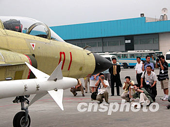 中國研制的新型殲擊機梟龍/FC-1型飛機日前在成都首次飛行,共飛行十七分鐘,取得圓滿成功,因此備受各界關(guān)注。圖為眾多媒體記者在拍攝成功首飛的梟龍/FC-1型飛機。作者:楊杰
