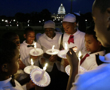 10日晚,在美國華盛頓國會大廈前,一教會的孩子們點燃蠟燭將以守夜方式紀念“9·11”這個另美國人難以忘記的慘痛事件。與此同時,這種自發(fā)的守夜活動還將在美國全境展開。