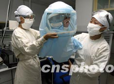 根據(jù)北京市新出臺的防治SARS緊急預(yù)案,如果出現(xiàn)一例SARS患者或疑似患者將首先啟動北京市地壇醫(yī)院。9月15日,地壇醫(yī)院ICU的護(hù)士已經(jīng)將治療SARS患者的防護(hù)、治療設(shè)施準(zhǔn)備到位以備隨時啟用。中新社記者:任晨鳴