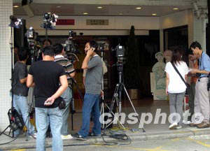 圖:香港大批記者守候瑪嘉烈醫(yī)院