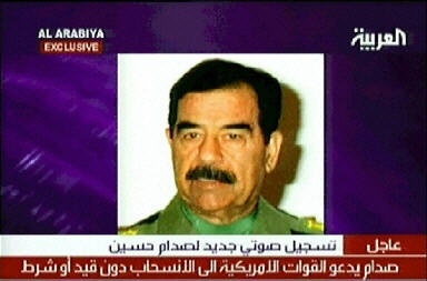 9月17日,設(shè)在阿聯(lián)酋首都迪拜的阿拉伯電視臺17日播放了一盤據(jù)稱是伊拉克前總統(tǒng)薩達姆錄制的最新錄音磁帶。薩達姆在錄音磁帶中要求說,美國必須無條件地將其駐伊美軍全部撤出伊拉克。