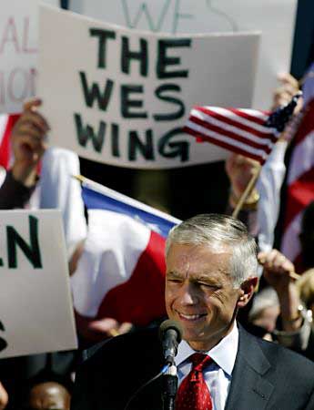 克拉克曾經(jīng)任職北約的司令官,現(xiàn)已退役,他在本周三宣布參選,不諱言需要金錢資助。他說:“這里是美國,有錢好辦事,我需要你們的支持!