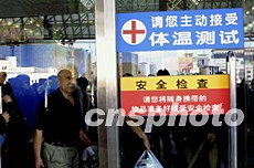 中國“十一”國慶長假前夕,北京西客站設(shè)立的體溫檢測點隨時自動監(jiān)測過往旅客的體溫狀況,保障節(jié)日出行者的健康。中新社記者:王瑤
