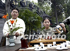 荷蘭國際球根花卉中心24日在北京和平藝苑組織插花技師與茶藝師進(jìn)行同臺藝術(shù)表演,吸引了不少北京市民。中新社記者:趙振清