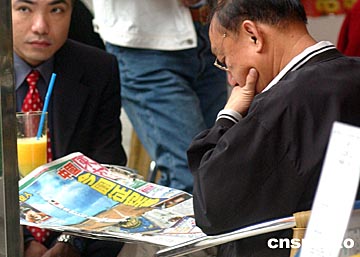 圖:北京市民關(guān)注“神舟”五號成功發(fā)射 (2003-10-15 15:19:45)