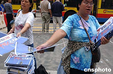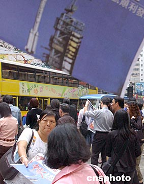 中國“神舟”五號十月十五日上午九時在酒泉衛(wèi)星發(fā)射中心成功升空,香港市民關(guān)注“神舟”五號首次載人發(fā)射成功。中新社記者:錢興強