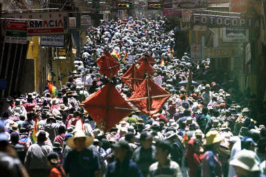 上萬的玻利維亞人10月16日在政府所在地拉巴斯舉行游行示威活動,要求總統(tǒng)貢薩洛·桑切斯·德洛薩達(dá)辭職。