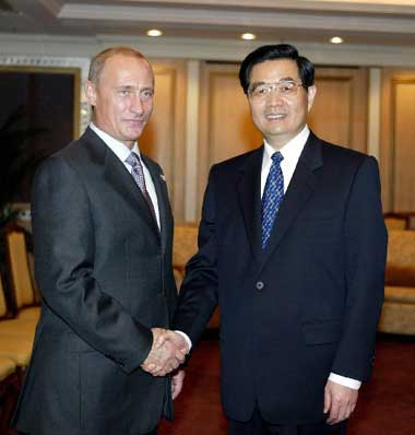 普京表示完全贊同胡錦濤對當前兩國關系的看法。他說,《俄中睦鄰友好合作條約》為俄中發(fā)展新世紀戰(zhàn)略協(xié)作伙伴關系奠定了法律基礎。俄中關系發(fā)展順利,雙邊貿易增長迅速,在國際事務中的磋商、協(xié)調和合作不斷擴大。從各方面看,俄中兩國關系中不存在任何不能解決的問題和障礙,所需要的就是更好、更快地開展友好合作。普京還熱烈祝賀中國成功進行首次載人航天飛行。