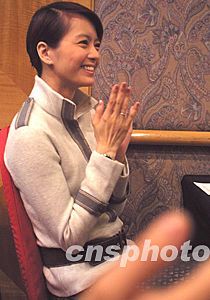 中國(guó)文化部副部長(zhǎng)孟曉駟、中國(guó)廣電總局副局長(zhǎng)趙實(shí)二十四日在北京貴賓樓飯店會(huì)見來(lái)自香港的影視演藝界訪京團(tuán)。香港藝人梁永琪一改清純少女形象,以整齊的束發(fā)和正式套裝參加會(huì)見。中新社記者:廖文靜