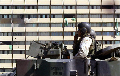 象征美軍權(quán)力的拉希德酒店遭明目張膽地襲擊,進(jìn)一步動搖美國穩(wěn)定伊拉克的努力,伊拉克人指這與華府不把權(quán)力交還給伊拉克人有關(guān)。(據(jù)香港文匯報)