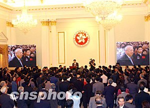 歡迎酒會(huì)上,先播出神舟五號(hào)升空及楊利偉在太空的片段。行政長官董建華致歡迎詞時(shí),首先表示用掌聲代表香港六百八十萬市民,歡迎祖國榮耀、民族的英雄楊利偉和他的同事的到來。同時(shí),他感謝中央政府的關(guān)懷,令楊利偉及航天代表團(tuán)可以在短時(shí)間到港,這是對(duì)香港的巨大鼓舞和支持。他說,親眼目睹這驕人的成就,一定大大加強(qiáng)香港市民尤其是年輕一代的民族自豪感,大大促進(jìn)中華民族的自尊和自信。香港市民一直關(guān)注祖國的發(fā)展和進(jìn)步,為祖國的每一項(xiàng)成就而高興和驕傲。他希望楊利偉和他的同事再到太空時(shí),回望地球,可以看到香港這顆“東方之珠”的光彩。