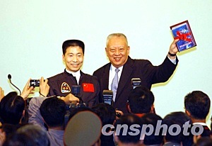 楊利偉的到來,在香港掀起新一輪“太空熱”。今天下午,神舟五號(hào)的返回艙已由北京運(yùn)抵香港,工作人員今天下午兩點(diǎn)前將返回艙移入科學(xué)館展覽廳,明天開始至十一月四日舉行“中國首次載人航天飛行展”,其八萬五千五百張免費(fèi)入場券日前已全數(shù)派罄,而其中的一百名觀眾,將有機(jī)會(huì)獲得楊利偉親筆簽名的展覽海報(bào)。