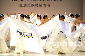 由新絲路著名模特打造的一臺(tái)亞洲民族時(shí)裝表演二日晚亮相博鰲亞洲論壇2003年年會(huì),贏得代表們的熱烈歡迎。中新社記者:毛建軍