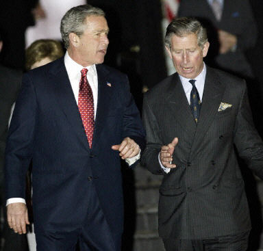 英國王儲(chǔ)查爾斯到倫敦希思羅機(jī)場迎接布什。