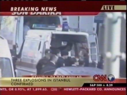 北京時間11月20日下午,位于土耳其伊斯坦布爾北部的土耳其匯豐銀行總部附近發(fā)生兩次爆炸,部分銀行建筑被摧毀。此后英國駐伊斯坦布爾領(lǐng)事館以及一個居民區(qū)和一座清真寺也遭到襲擊。圖為爆炸中受傷人員被抬上救護車。(春風(fēng))