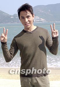 歌星黃凱芹11月26日在香港赤柱正灘為無線電視拍攝音樂劇《愛在富豪海灣的日子》外景,黃凱芹與關(guān)心妍拍完一幕親熱戲后,雙手?jǐn)[出勝利手勢。作者:鄧慶樂