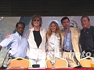 印度時代集團主席PRANEEP GUHA、知名攝影大師DICK ZIMMERMAN、暢銷書作家CANDACE BUSHUNELL、美國當紅電視明星CLIVE ROBERTSON、著名慈善機構(gòu)主席ORG SLONIM(從左至右) 。中新社記者:王辛莉